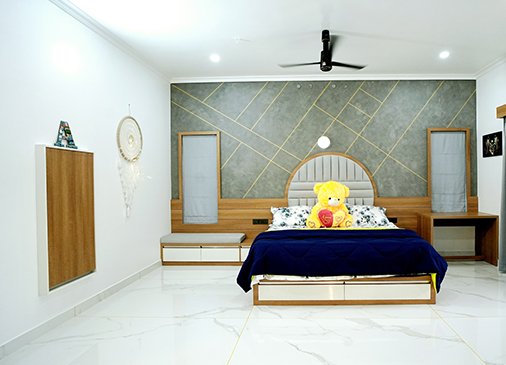 At Igna Interiors, we design bedrooms that offer both comfort and elegance. Our bedroom interiors are tailored to create a serene and stylish space where you can unwind and relax. From custom wardrobes to luxurious fabrics, soothing color palettes, and thoughtful layouts, we ensure your bedroom is a perfect balance of aesthetics and functionality. Whether you desire a minimalist retreat or a cozy, lavish haven, we’ll craft a design that reflects your personality and enhances your comfort. Turn your bedroom into a sanctuary with Igna Interiors—where relaxation meets style!